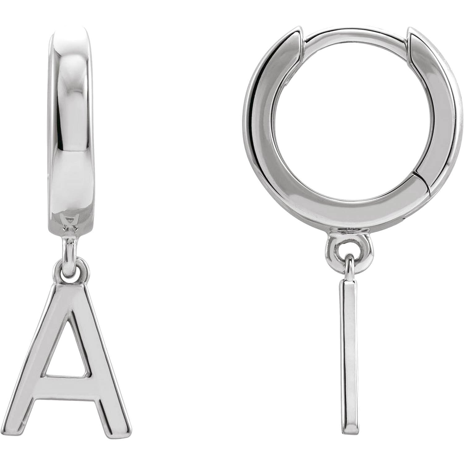 - Earring Style: Huggie hoop with initial detail