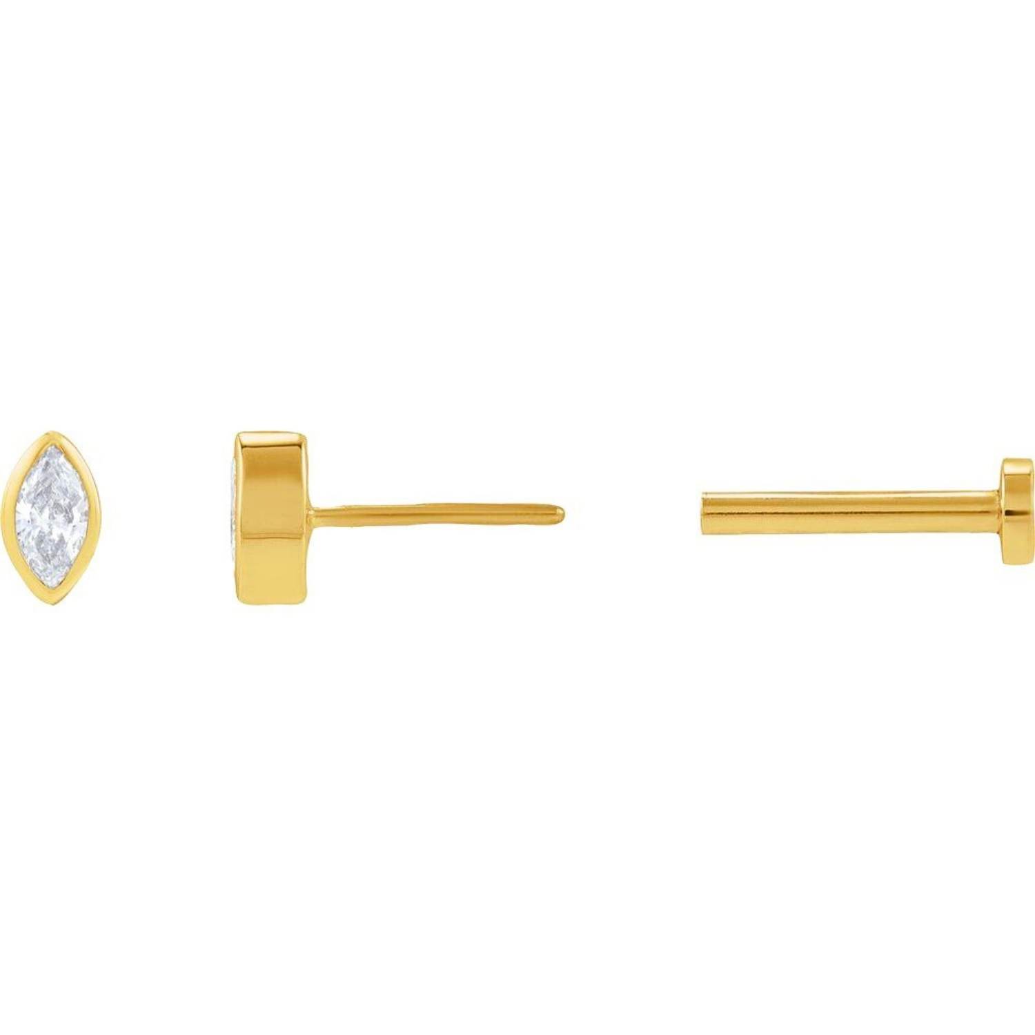 14K Gold Single Genuine Marquise Diamond Stud Earrings Tension Flat Back