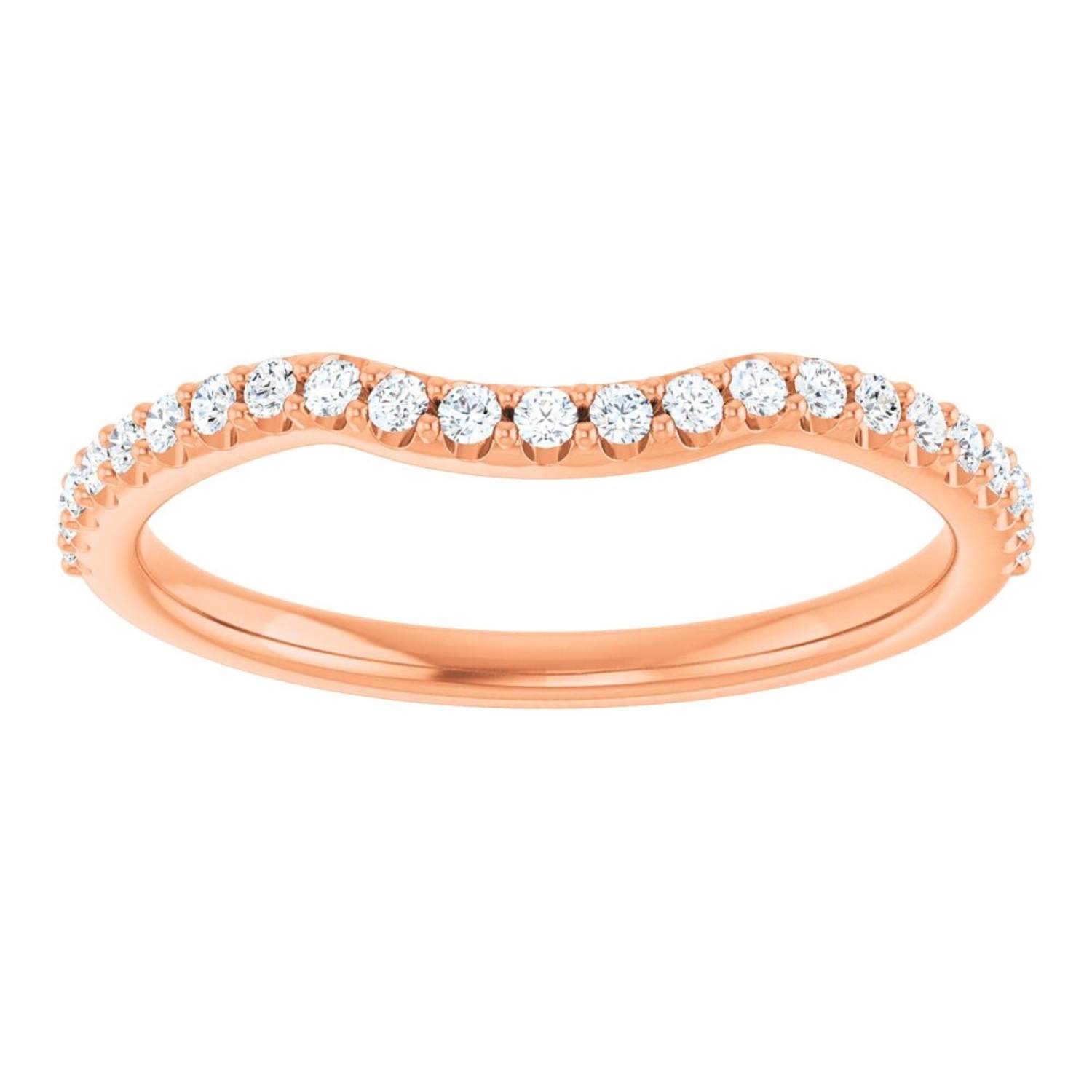 1/5 CTTW Diamond Slightly Curved Wedding Band offers timeless elegance with a modern touch, dazzling with its delicate curved form and sparkling diamond setting. The curved top perfectly complements solitaire or halo-style rings, creating a stackable look. Carefully set on the elegant texture of 14K gold, 23 round-cut natural diamonds offer a sophisticated sparkle that shines in every light.