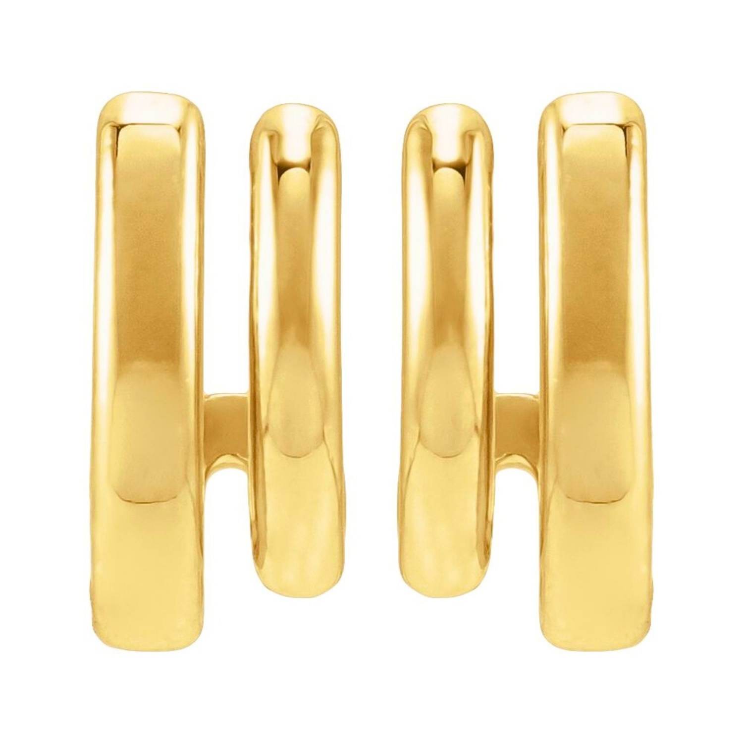11 mm Small Double-Row Stacked J-Hoop Earrings 14K Gold