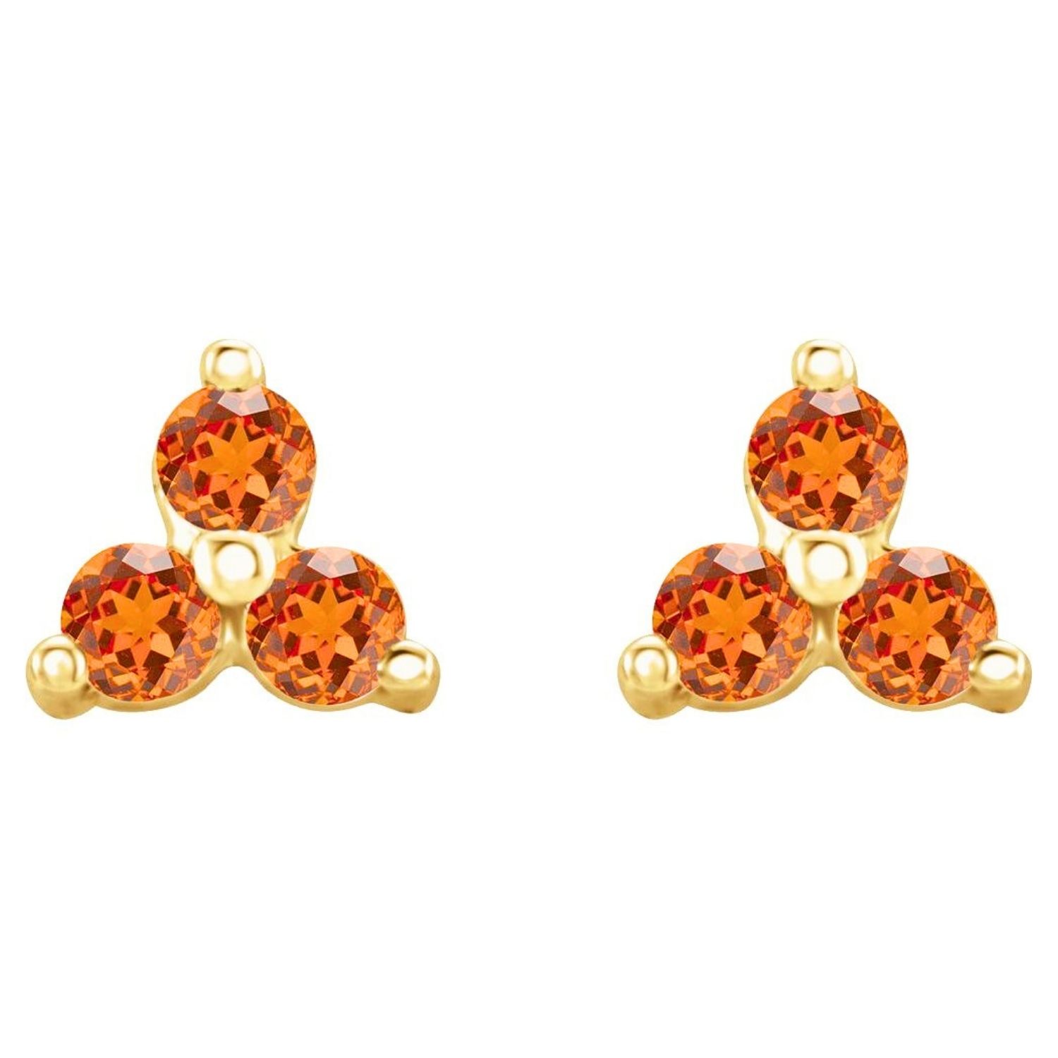 14K Yellow Gold Spessartite Garnet Three Stone Cluster Stud Earrings