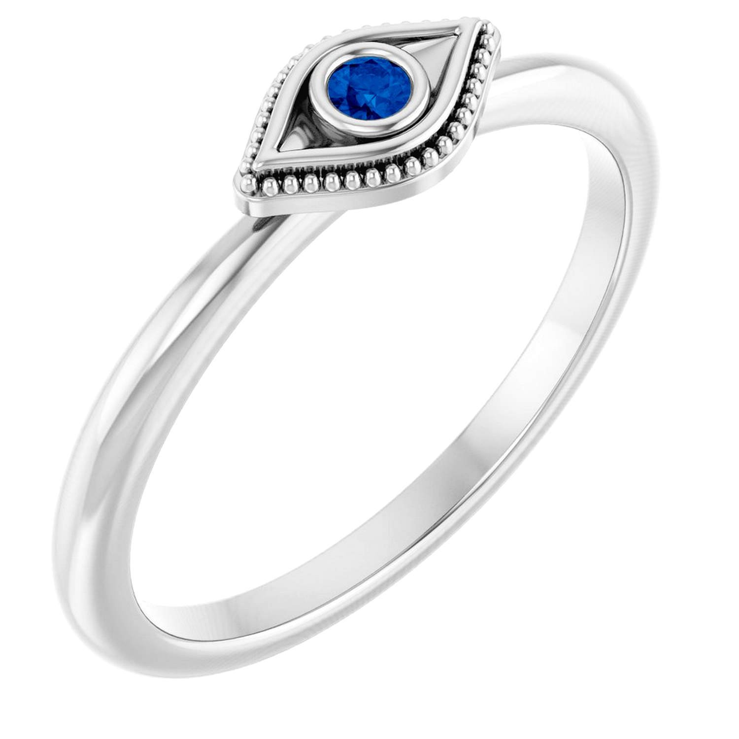 14K Gold Stackable Blue Sapphire Evil Eye Ring