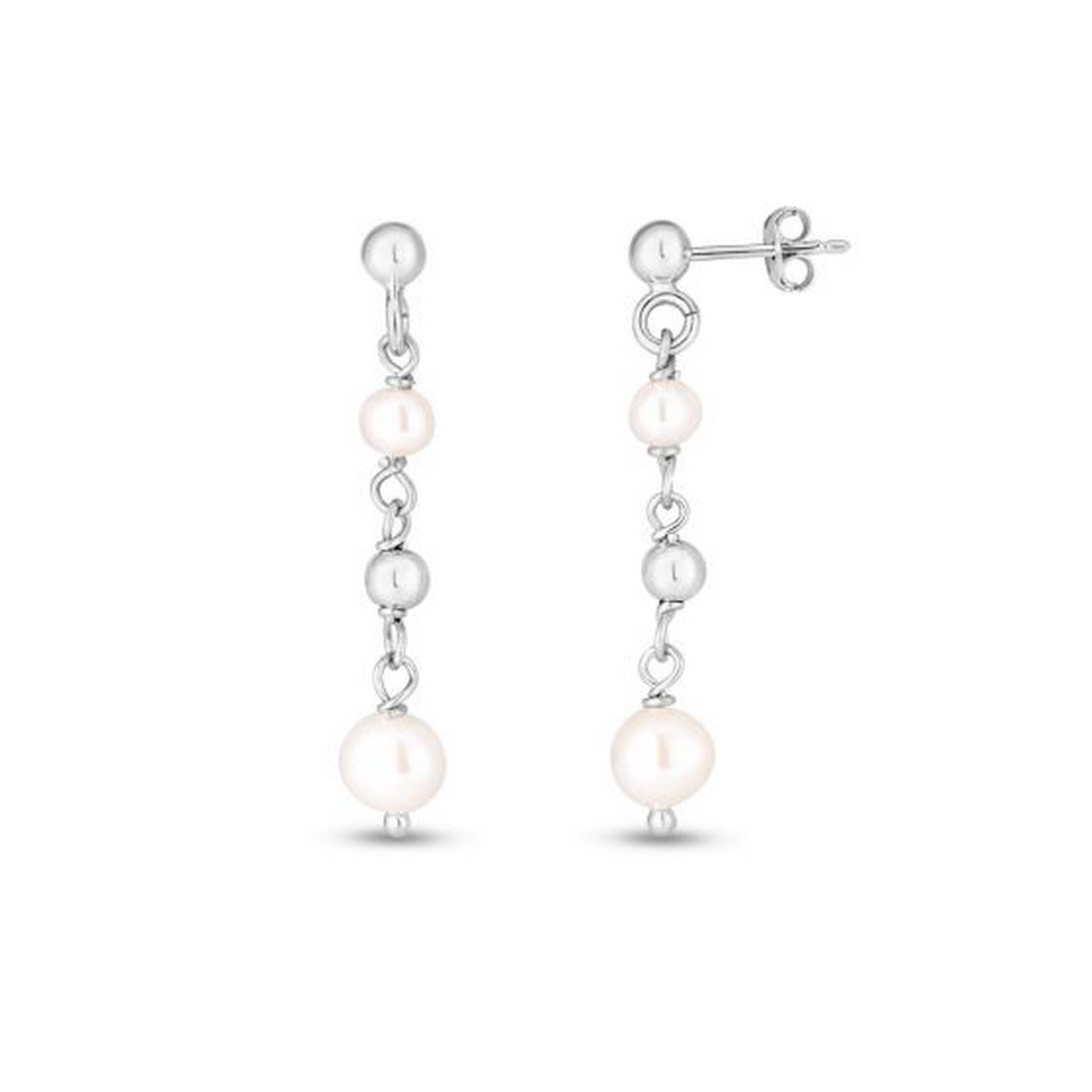 Sterling Silver Freshwater Pearl Bead Drop Earrings 37mm Long