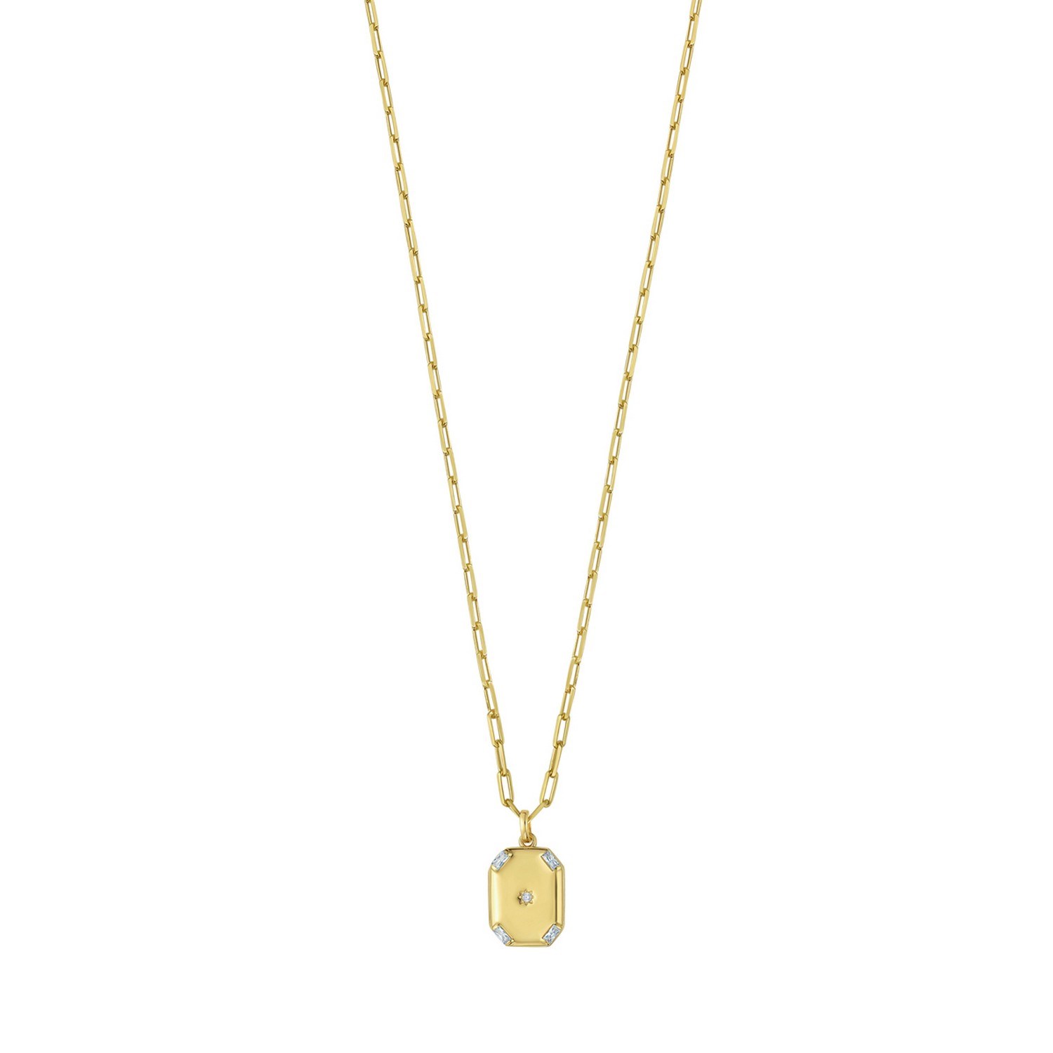 The Sterling Silver 14K Gold Plated Cubic Zirconia Octagonal Star Locket Necklace offers a meaningful and aesthetically pleasing design crafted with fine jewelry quality. The octagonal-shaped, openable locket pendant features a star-detailed cubic zirconia stone at its center, lending the necklace a balanced and sophisticated sparkle. Its 925 sterling silver base with 14K gold plating provides a warm tone, making it suitable for everyday wear. Its openable design allows you to carry a photo or small memento. It can be worn as an elegant statement piece on its own or easily combined with different necklaces. It is a timeless and special option for those looking for a meaningful gift.