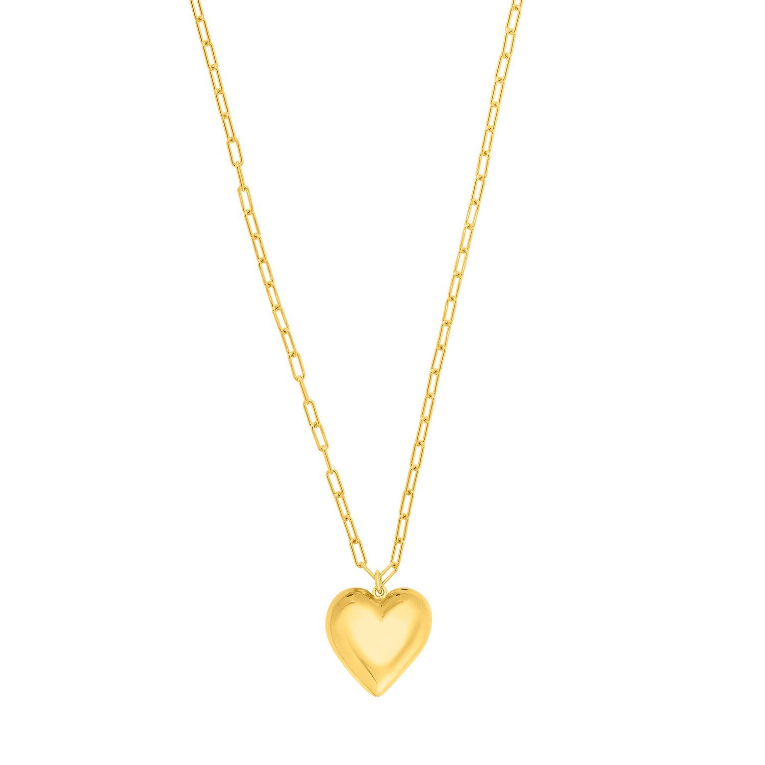 Sterling Silver 14K Gold Plated Large Puffed Heart Long Chain Necklace