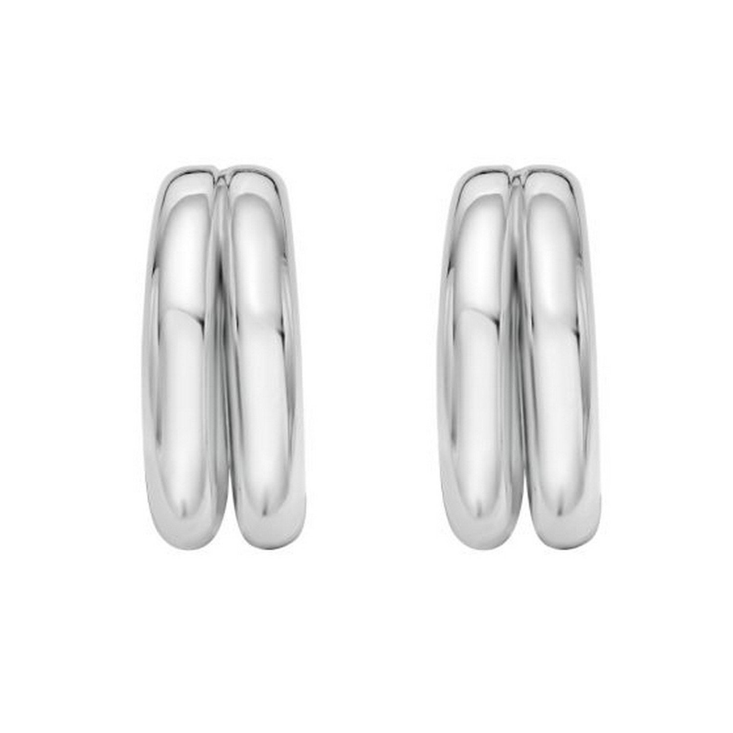 Stylish sterling silver puffed double row hoop earrings featuring a polished finish and bold, rounded design. The double row structure adds depth and dimension, creating a modern yet timeless look perfect for everyday elegance or special occasions.