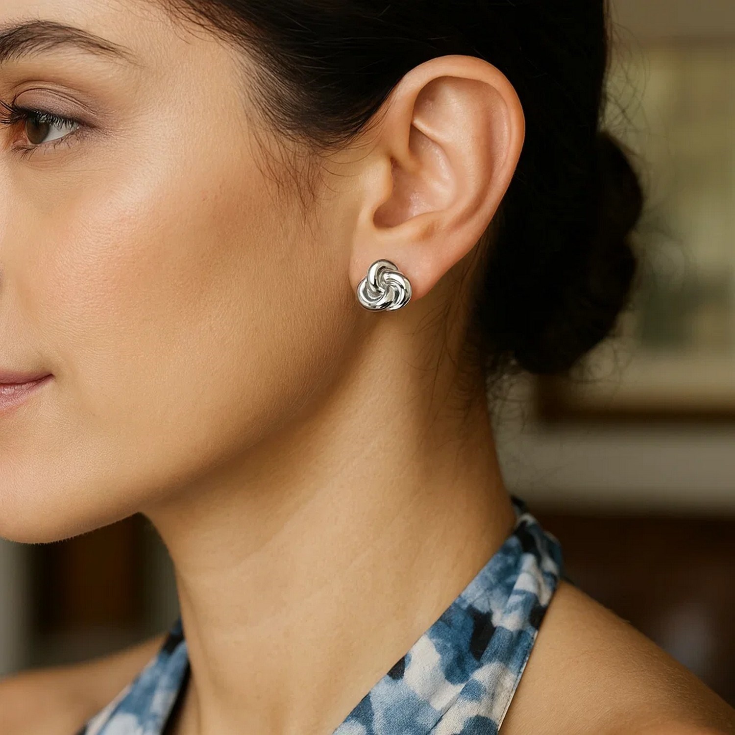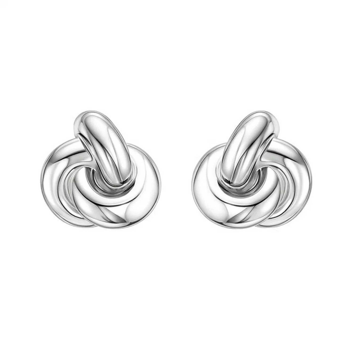 Elegant sterling silver puffed love knot stud earrings featuring an intertwined design symbolizing unity and affection. The puffed, polished finish adds depth and shine, creating a timeless and sophisticated look perfect for any occasion.