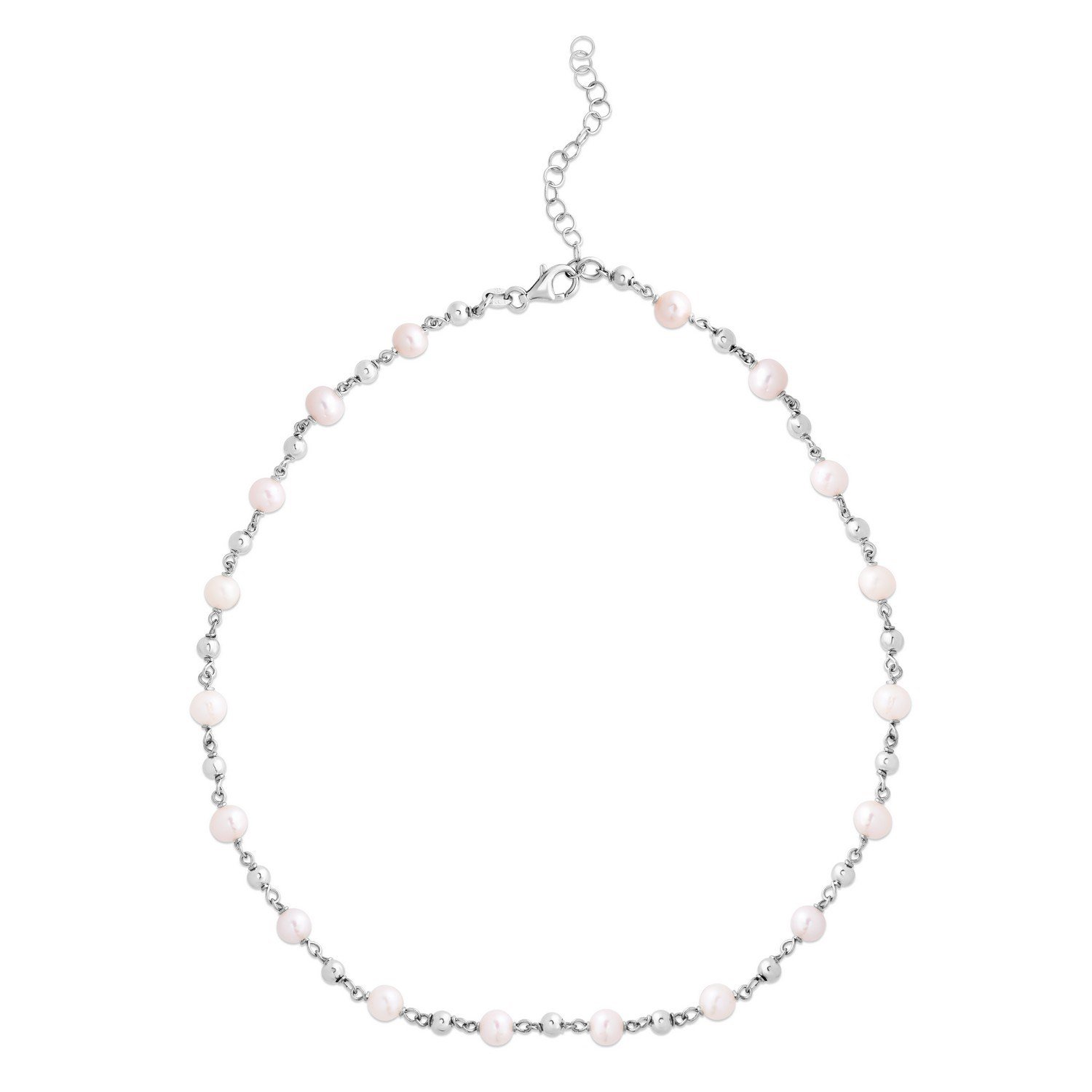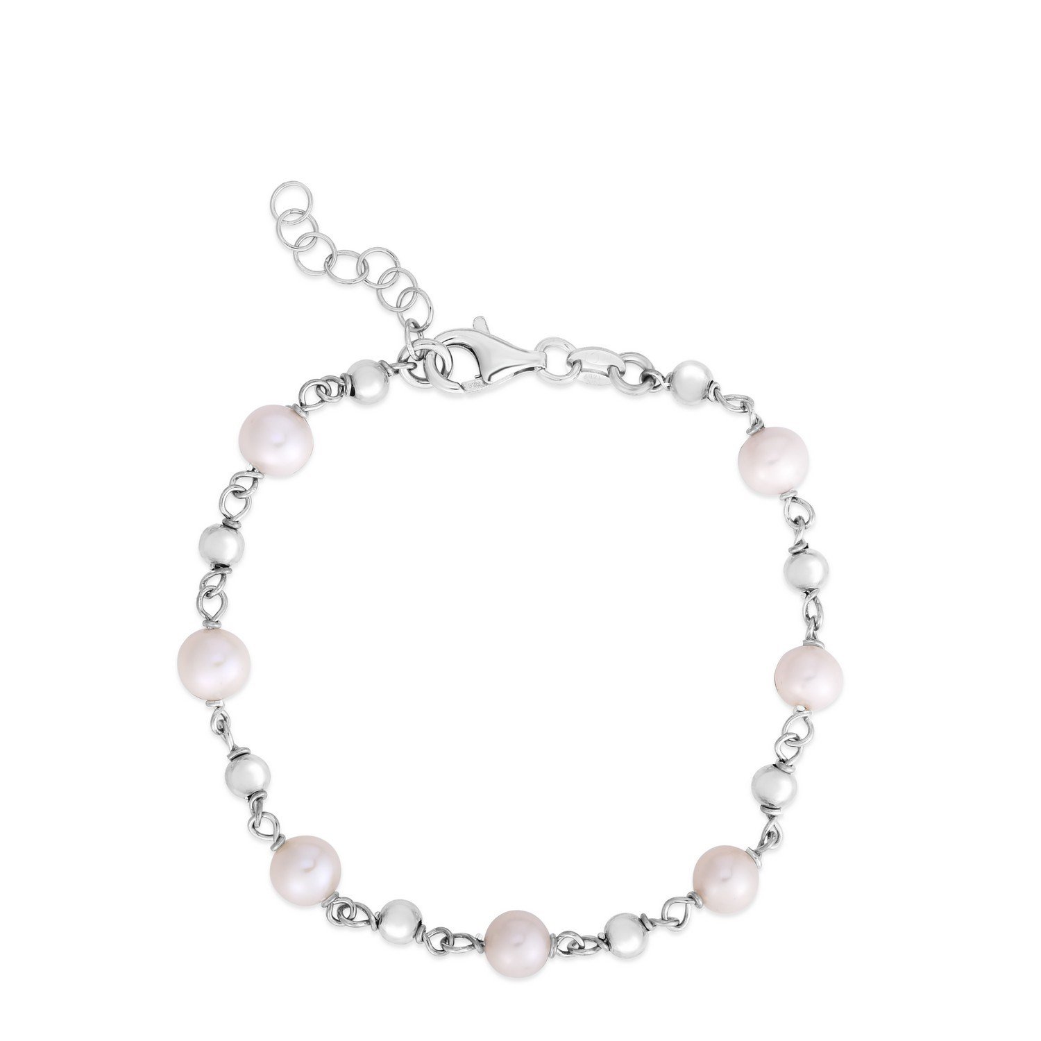 Sterling Silver Beaded Pearl Bracelet 8 Inch