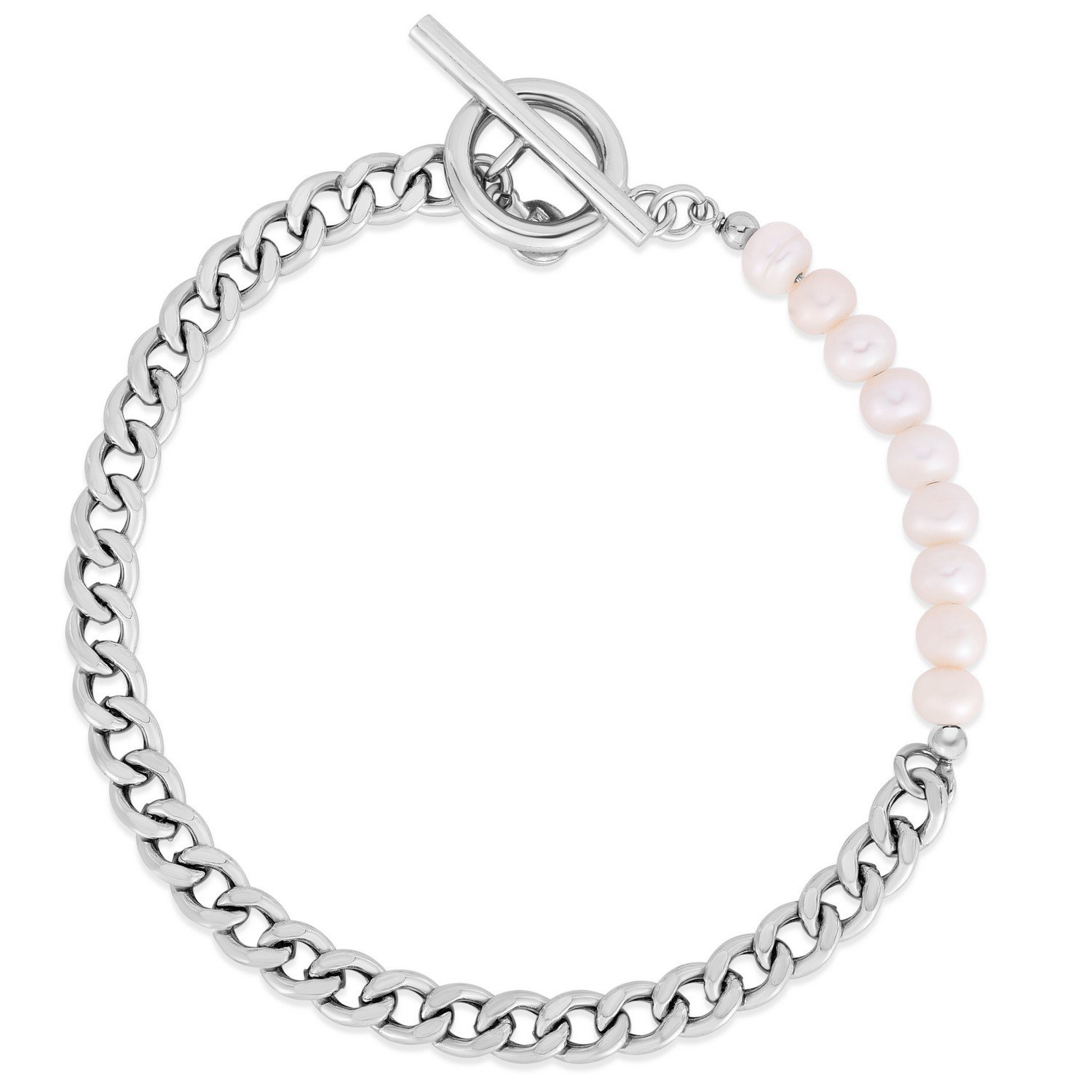 925 Sterling Silver Half Curb Chain Half Freshwater Pearl Toggle Bracelet is a unique accessory that combines the elegance of pearls with a modern chain. Order online now to take advantage of free shipping and special discounts.