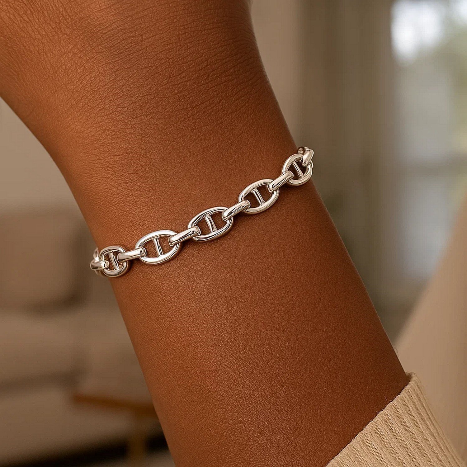 The Sterling Silver Puffed Mariner Chain Bracelet 9mm offers a bold and stylish design with large, raised mariner chain links, crafted to fine jewelry quality. Its hypoallergenic composition ensures safe use on sensitive skin. Its lightweight construction provides all-day comfort. The raised links on the chain can be worn alone or combined with other bracelets. It is a unique piece of jewelry that can be presented as a luxurious and stylish gift for Valentine’s Day, birthdays, or other special occasions.
