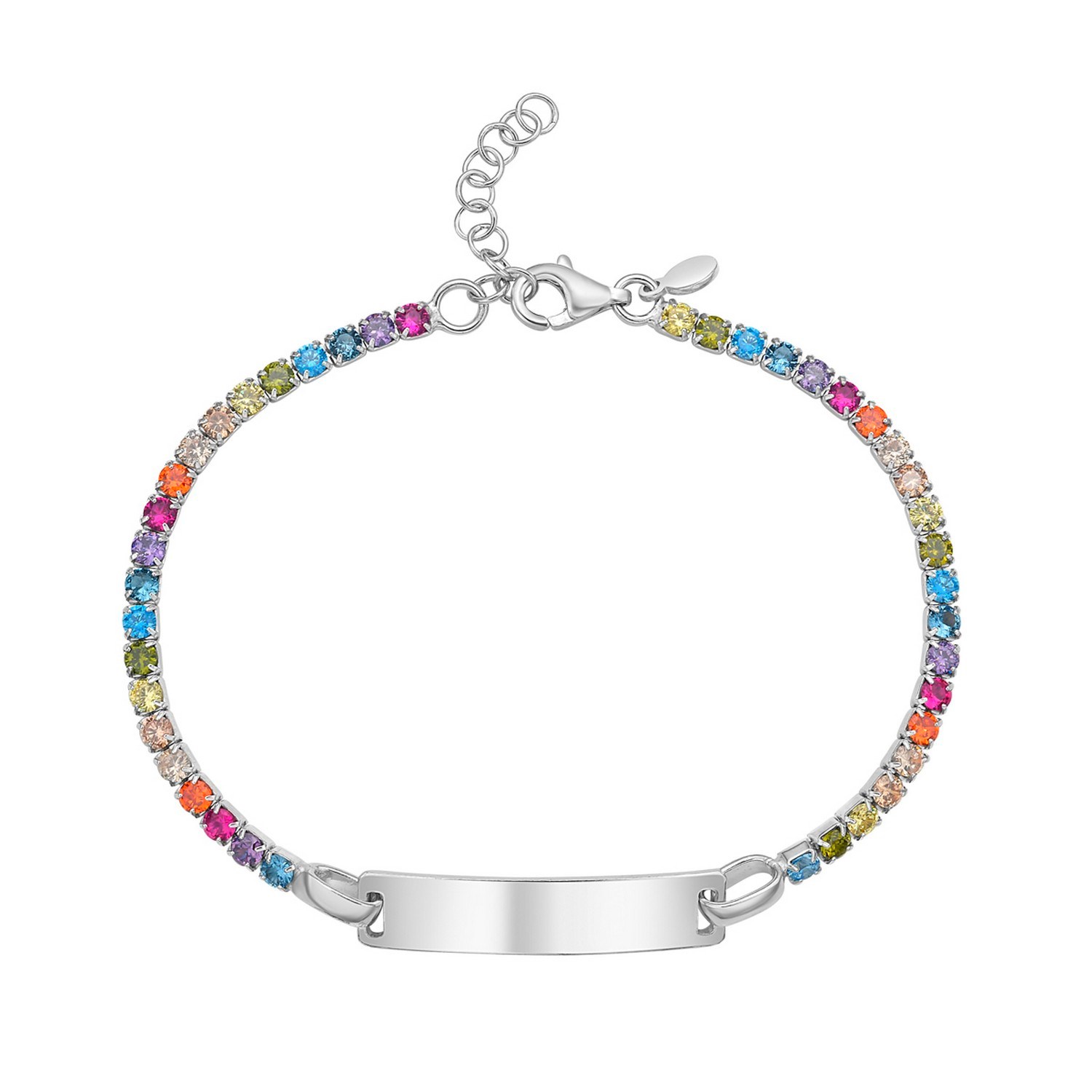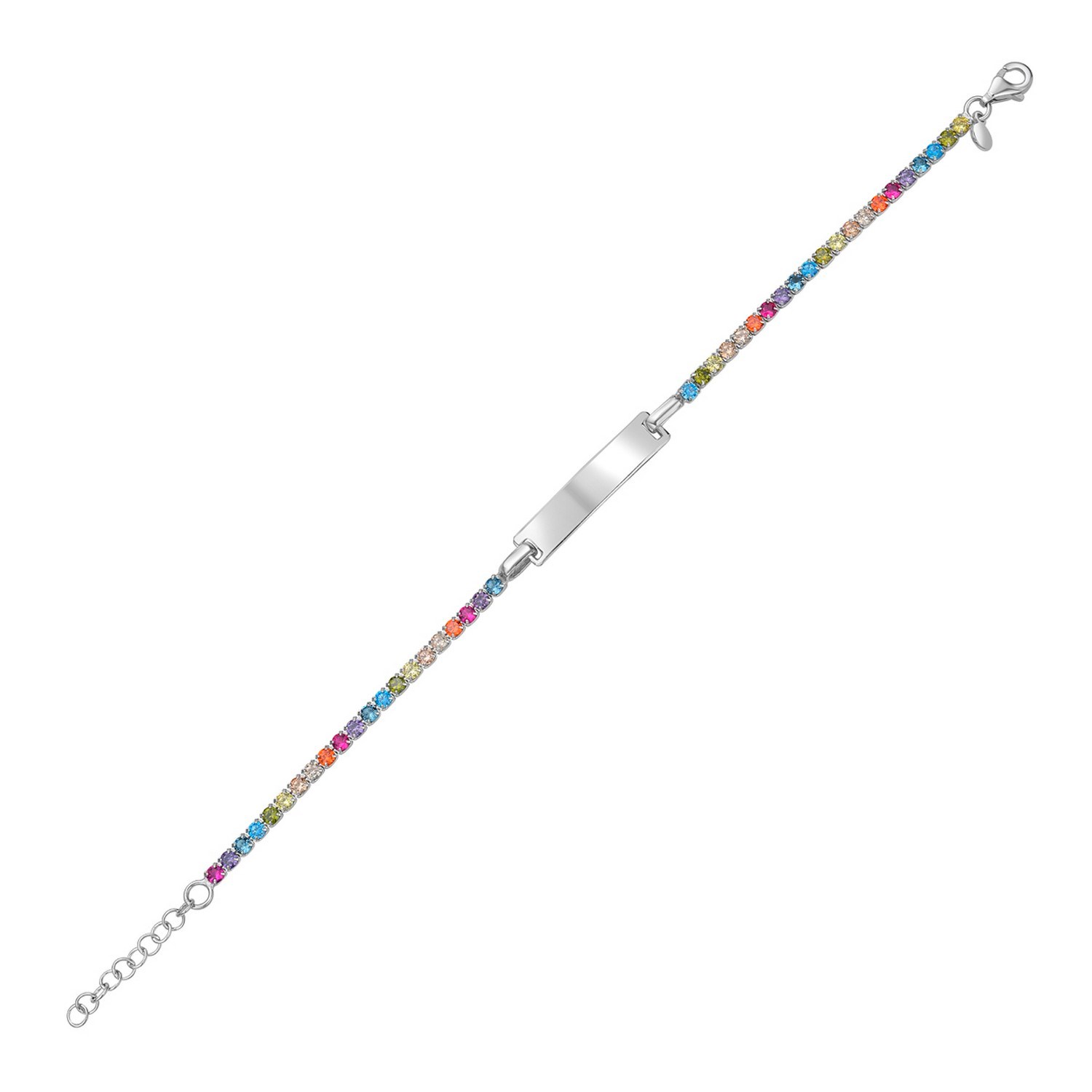 Sterling Silver Rainbow CZ ID Tennis Bracelet