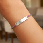 The Sterling Silver Rainbow CZ ID Tennis Bracelet offers a modern and balanced design crafted with fine jewelry quality. The flat ID bar shape, adorned with colorful cubic zirconia stone details, gives the bracelet a vibrant and clear sparkle. Thanks to its rhodium-plated 925 sterling silver construction, it maintains its durability over time, is hypoallergenic, and does not tarnish. Suitable for everyday wear, it can be worn alone as a simple yet eye-catching piece or easily combined with other bracelets. It is a unique piece of jewelry that can be presented as a luxurious and stylish gift for Valentine’s Day, birthdays, or other special occasions.