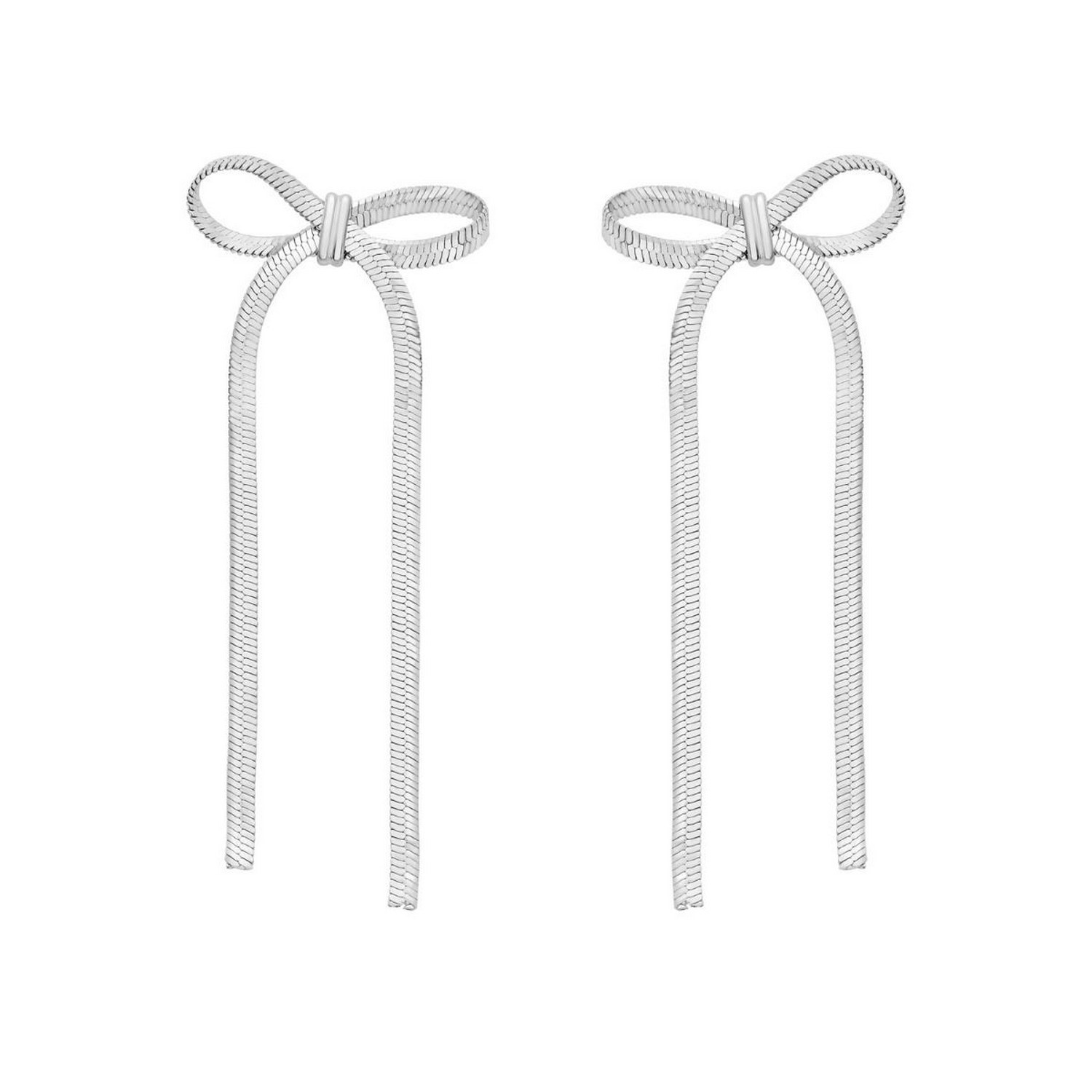 Sterling Silver Snake Chain Drop Dangle Bow Earrings