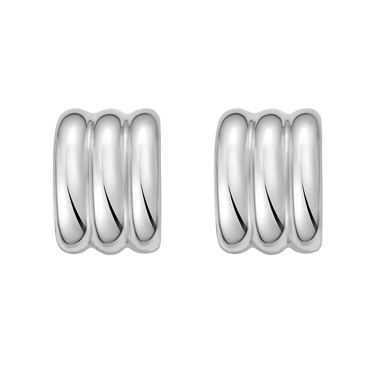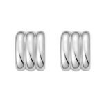 Sterling Silver Small Wide Triple Row C Hoop Earrings
