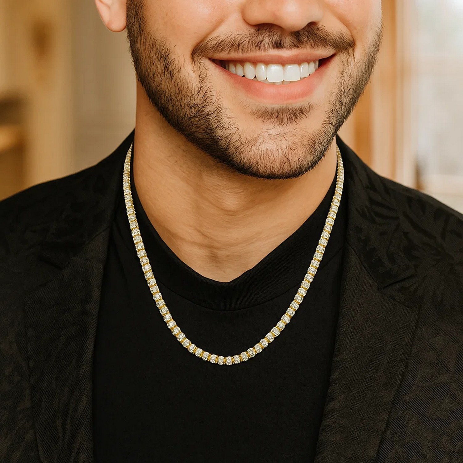 The Gold-Plated Sterling Silver Ice Barrel Chain Necklace 4mm is a high-quality, tarnish-resistant, hypoallergenic chain. Its 4.00 mm thick ice barrel design features faceted surfaces and barrel-shaped links for a modern look. It provides a balanced and comfortable fit around the neck and stands out when worn alone. Combined with your favorite pendant, it creates a chic and unique style. Suitable for everyday wear, it complements any outfit. It is an ideal piece both for yourself and as a valuable gift.