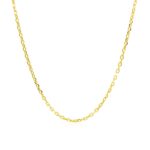 Yellow Gold Plated Sterling Silver 1.4 mm Diamond Cut Cable Chain Necklace, crafted with fine jewelry quality, is a tarnish-resistant and hypoallergenic chain. Suitable for everyday wear, it offers a light, comfortable fit around the neck. The 1.4 mm thick diamond-cut cable links provide a brilliant sparkle and an elegant appearance. Wear it alone or combine it with your favorite pendant to add a modern detail to your style.