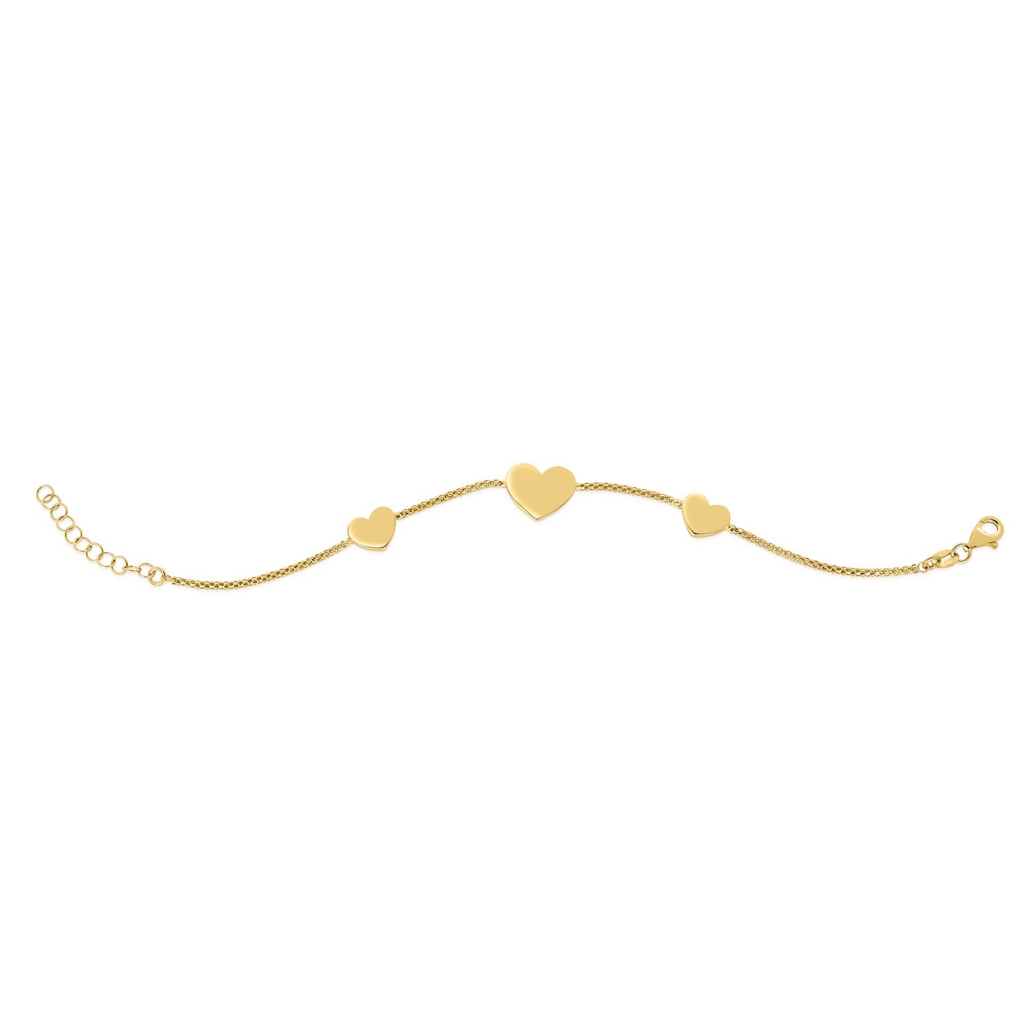 Sterling Silver 14K Yellow Gold Plated Hearts Station Bracelet