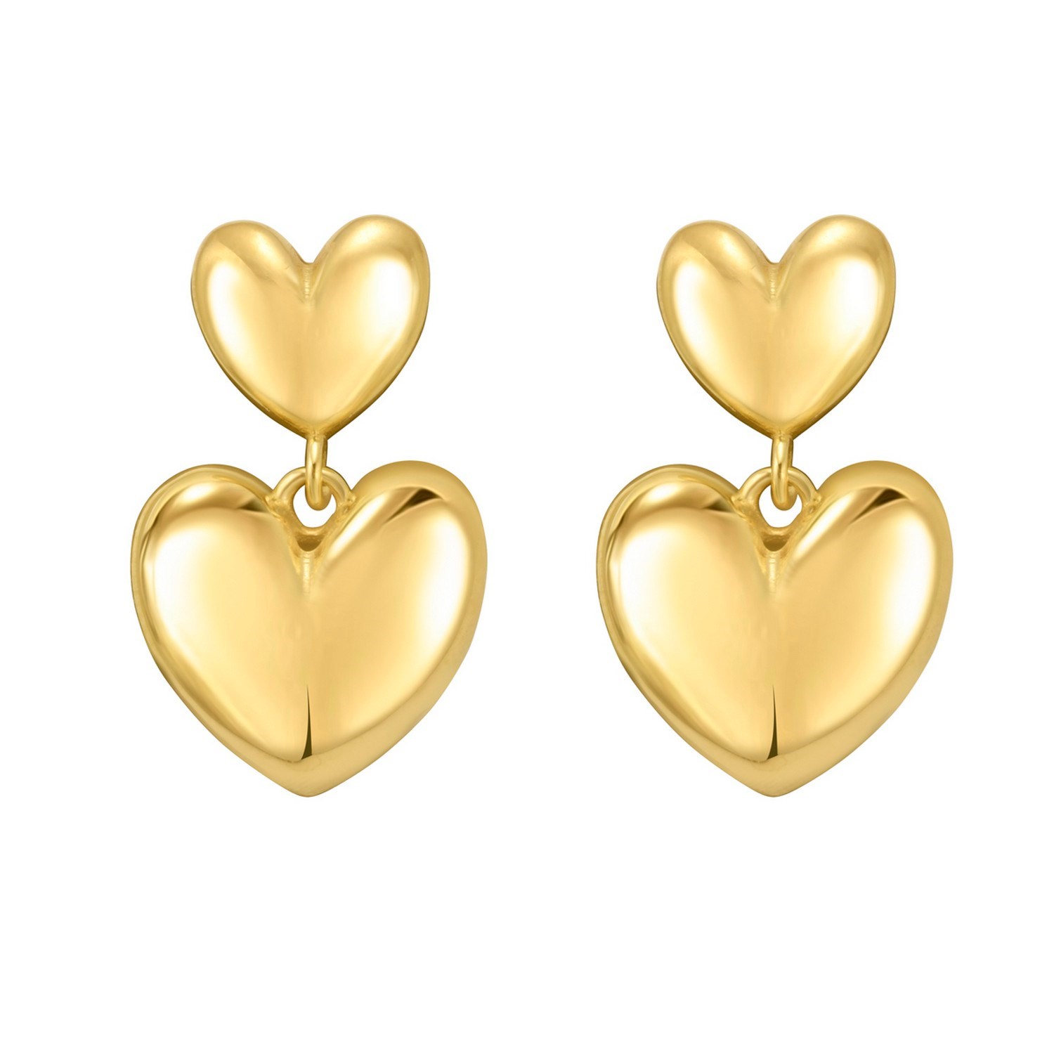 Be the first to review “Puffed Double Heart Drop Earrings Gold Plated Silver”