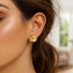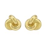 Charming sterling silver yellow gold plated puffed love knot stud earrings featuring an elegant intertwined design symbolizing love and unity. The puffed, polished finish and warm golden hue create a timeless look of sophistication and grace.