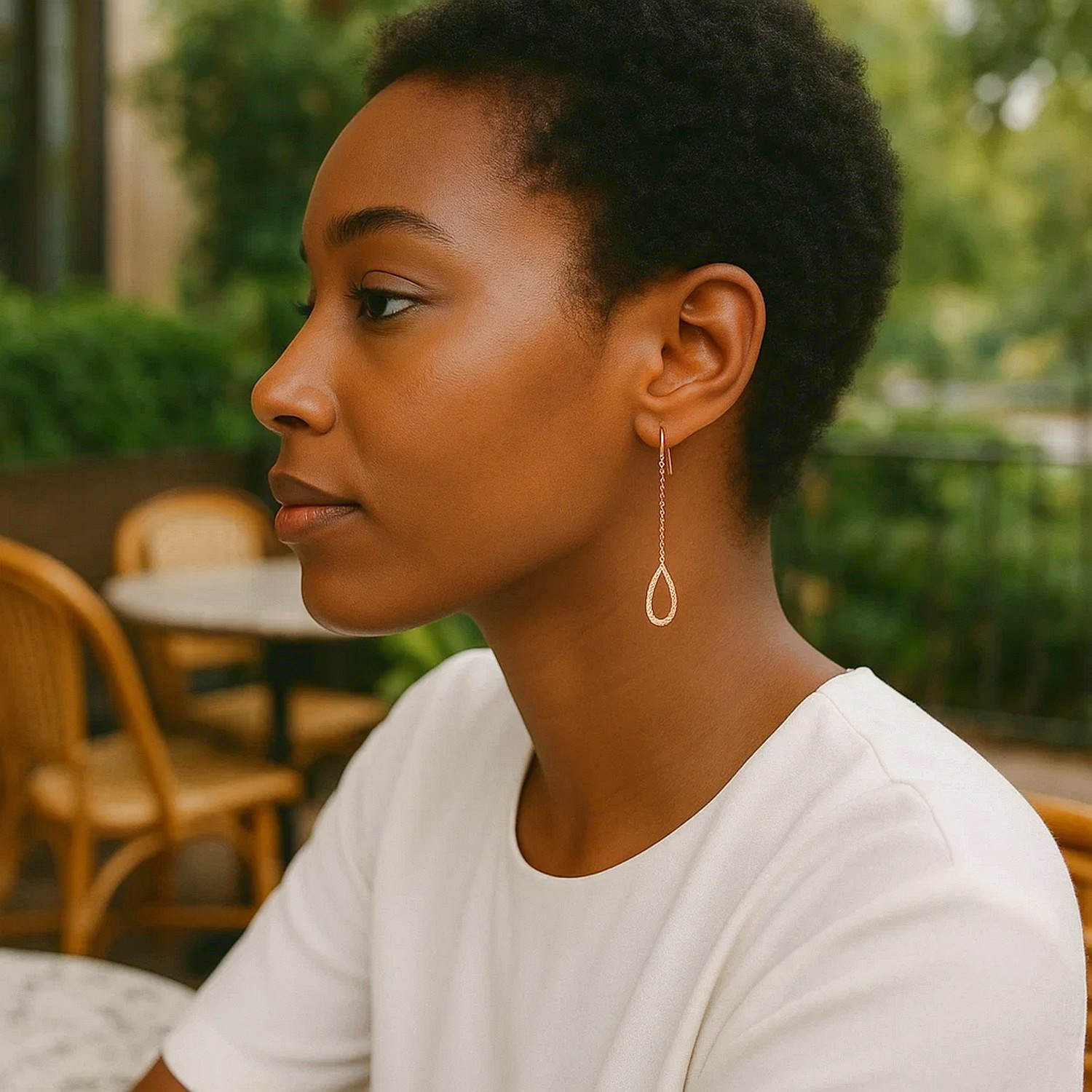 - Model: Textured Drop-Shaped (Open Pear) Chain Dangle Earrings