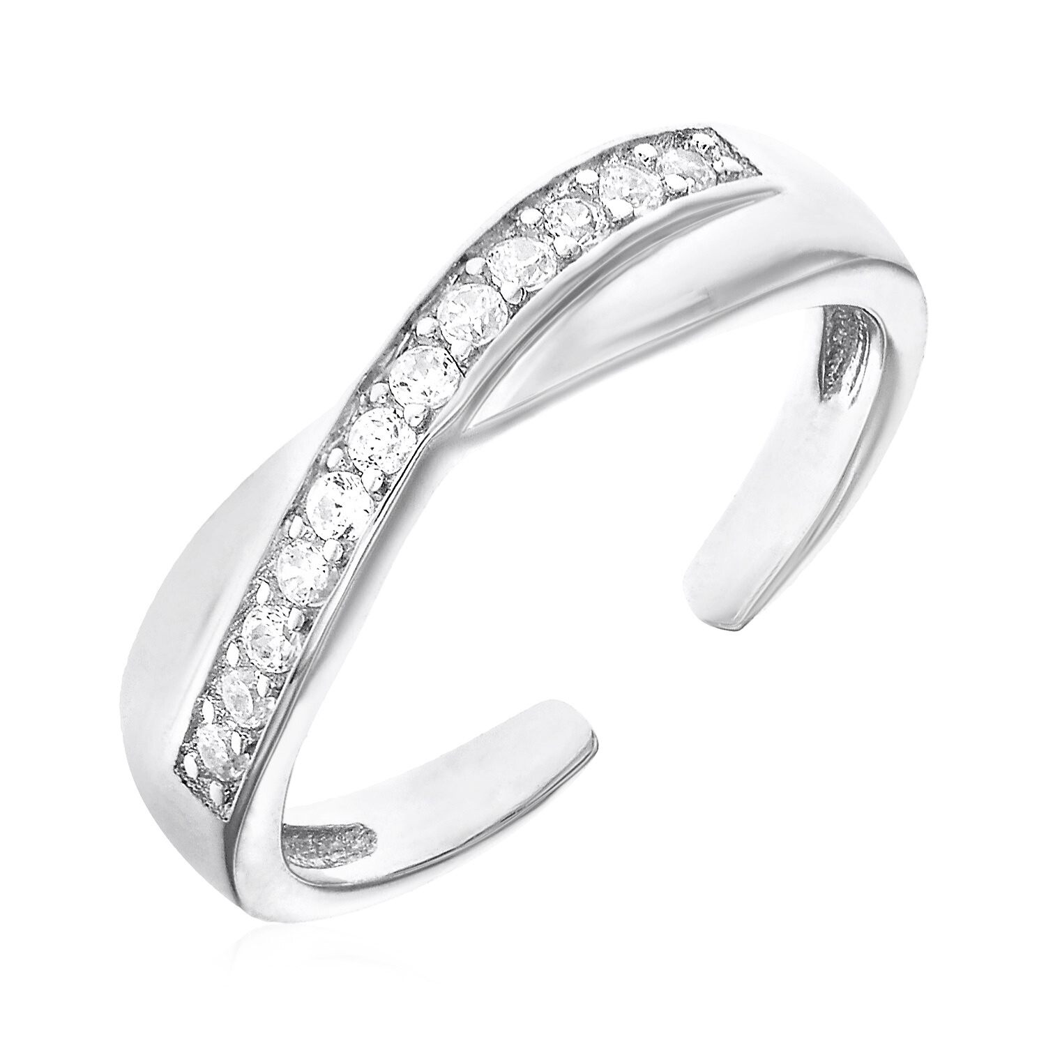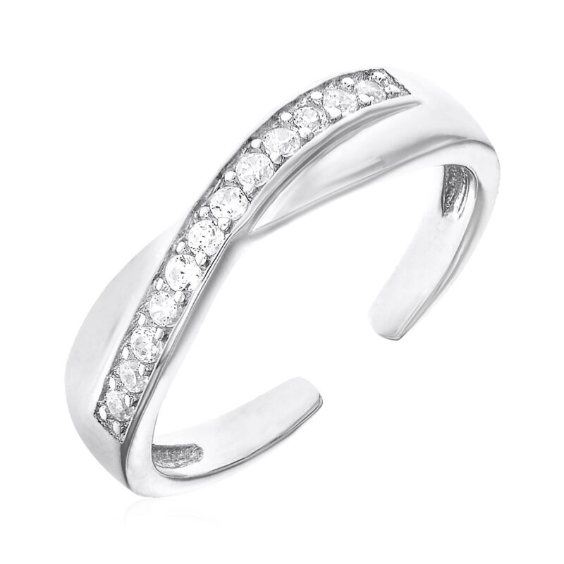 A subtle twist motif and sparkling cubic zirconia give this sterling silver toe ring a fresh, playful look that brightens up any day.