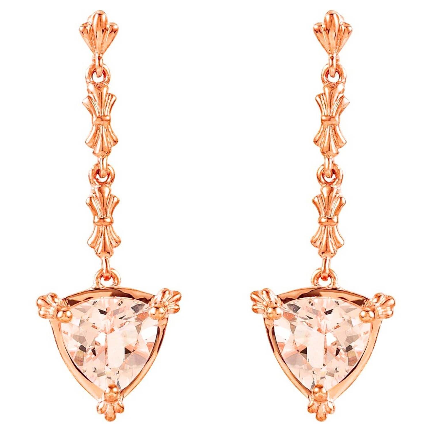 14K Rose Gold Vintage Style Trillion Cut Pink Morganite Drop Dangle Earrings are the perfect piece for those who love the soft tones of natural stones and the warm look of pink gold. It is a timeless piece of jewelry that can be easily worn with both casual and elegant outfits. Buy online now and take advantage of free shipping and special discounts.