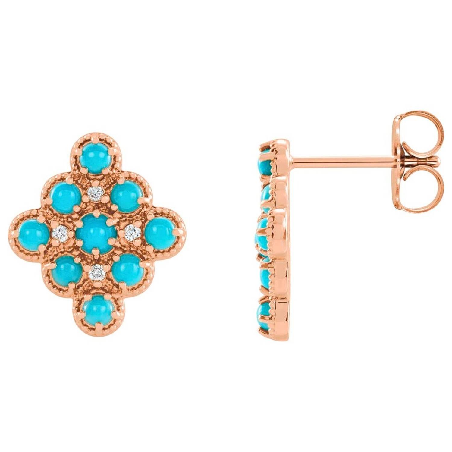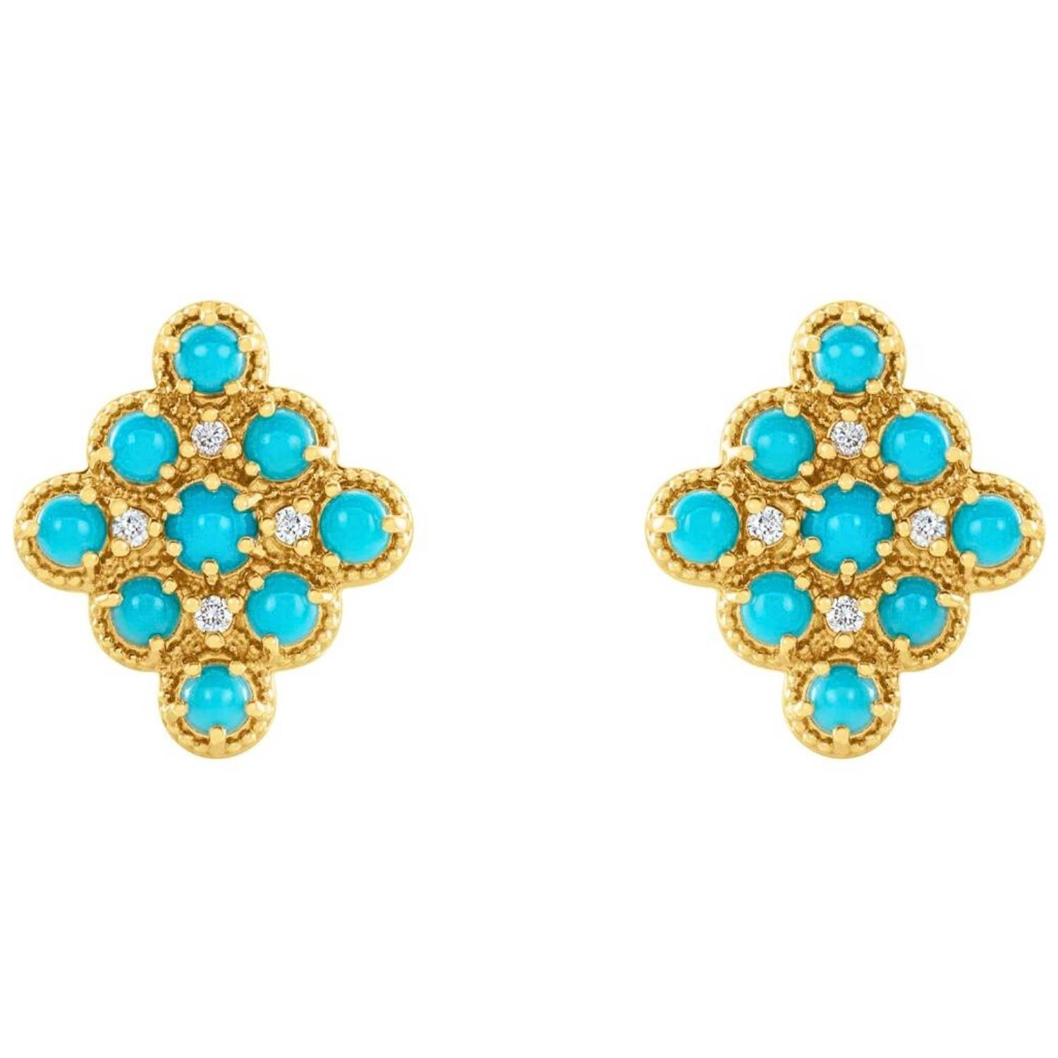 14K Gold Turquoise Cluster Stud Earrings with Diamonds, offering an eye-catching earring experience with the combination of natural turquoise and diamonds. Order online now, don’t miss out on free shipping and special discounts.