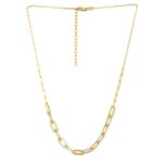 This necklace is not just a piece of jewelry; it’s a statement. The graduated paperclip links create a fluid, graceful silhouette, while the larger two-tone embellished links add depth and visual interest. Wear it alone for a minimalist look or layer it with other necklaces for a trendy stacked effect.