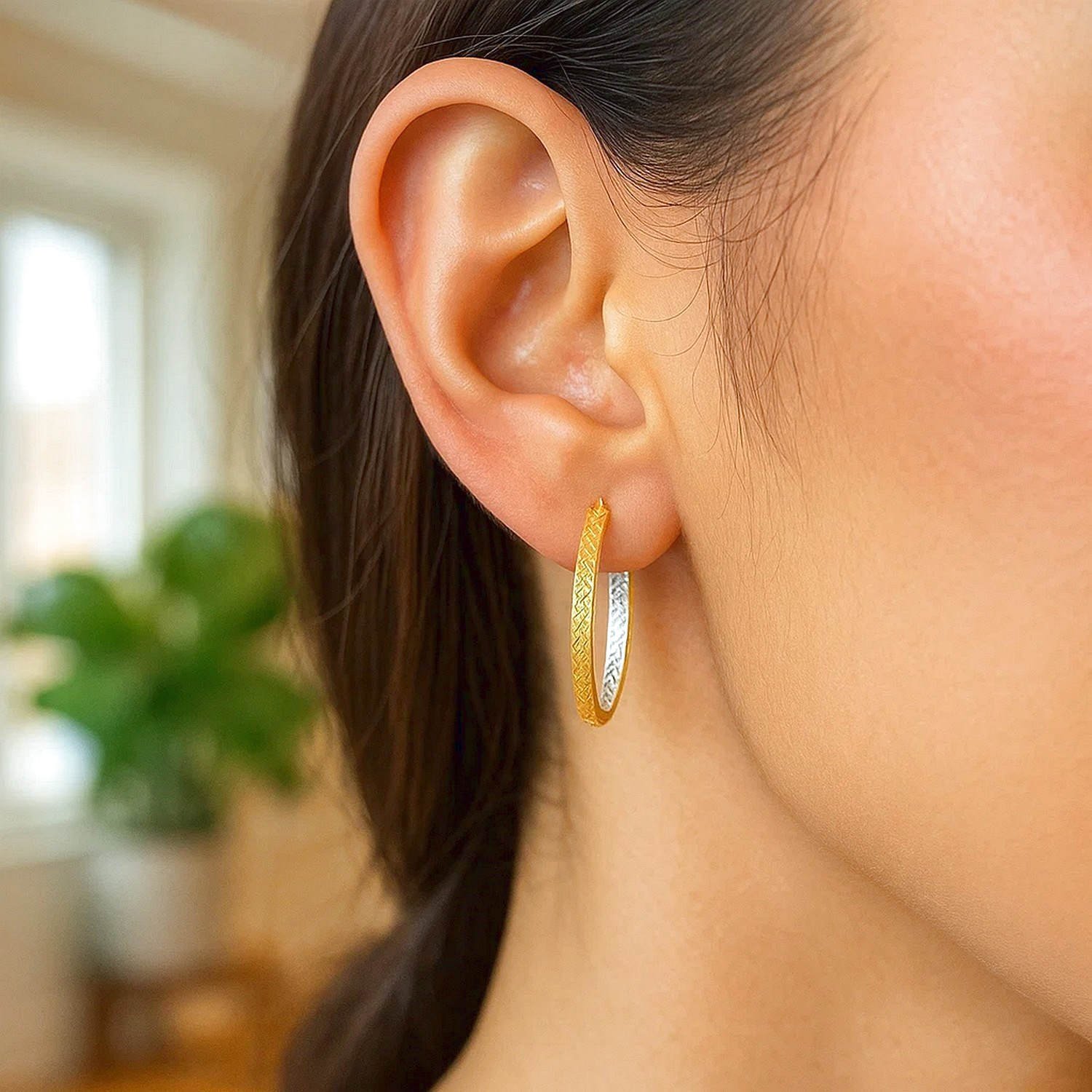 Model: Patterned Hoop Earrings Inside and Out