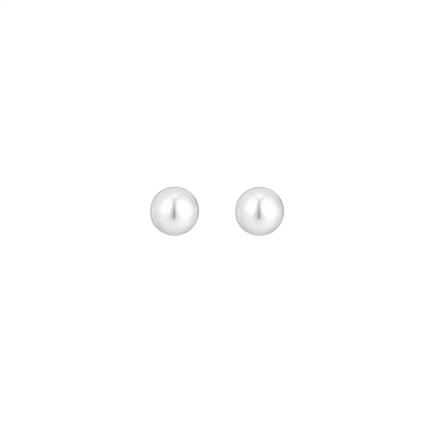 Elegant white freshwater cultured pearl stud earrings set in 14K white gold measuring 4.00 mm. Featuring luminous round pearls with a smooth, natural sheen, these timeless earrings embody classic sophistication, perfect for everyday elegance or formal occasions.