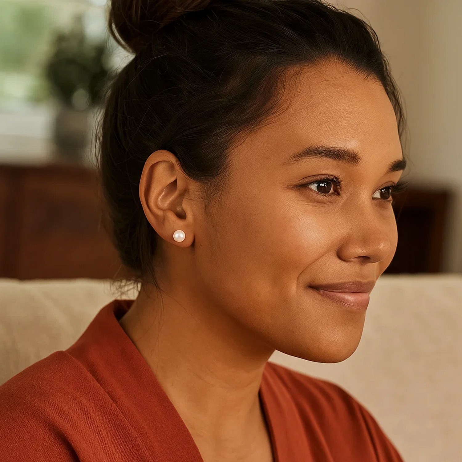 Elegant white freshwater cultured pearl stud earrings set in 14K white gold measuring 7.00 mm. Featuring luminous round pearls with a smooth, natural sheen, these timeless earrings embody classic sophistication, perfect for everyday elegance or formal occasions.