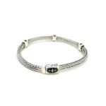 This sterling silver woven rope bracelet adds a modern edge to your look, featuring bold X-shaped accents adorned with natural black sapphires.